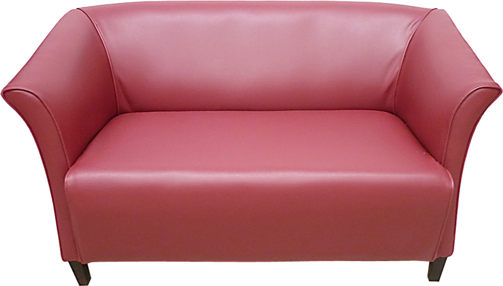Stylish modern looking English made settee. This settee is stocked in a Black ,Brown,Cream and Red faux leathers but can be made to order in any standard fabric and wood finish .